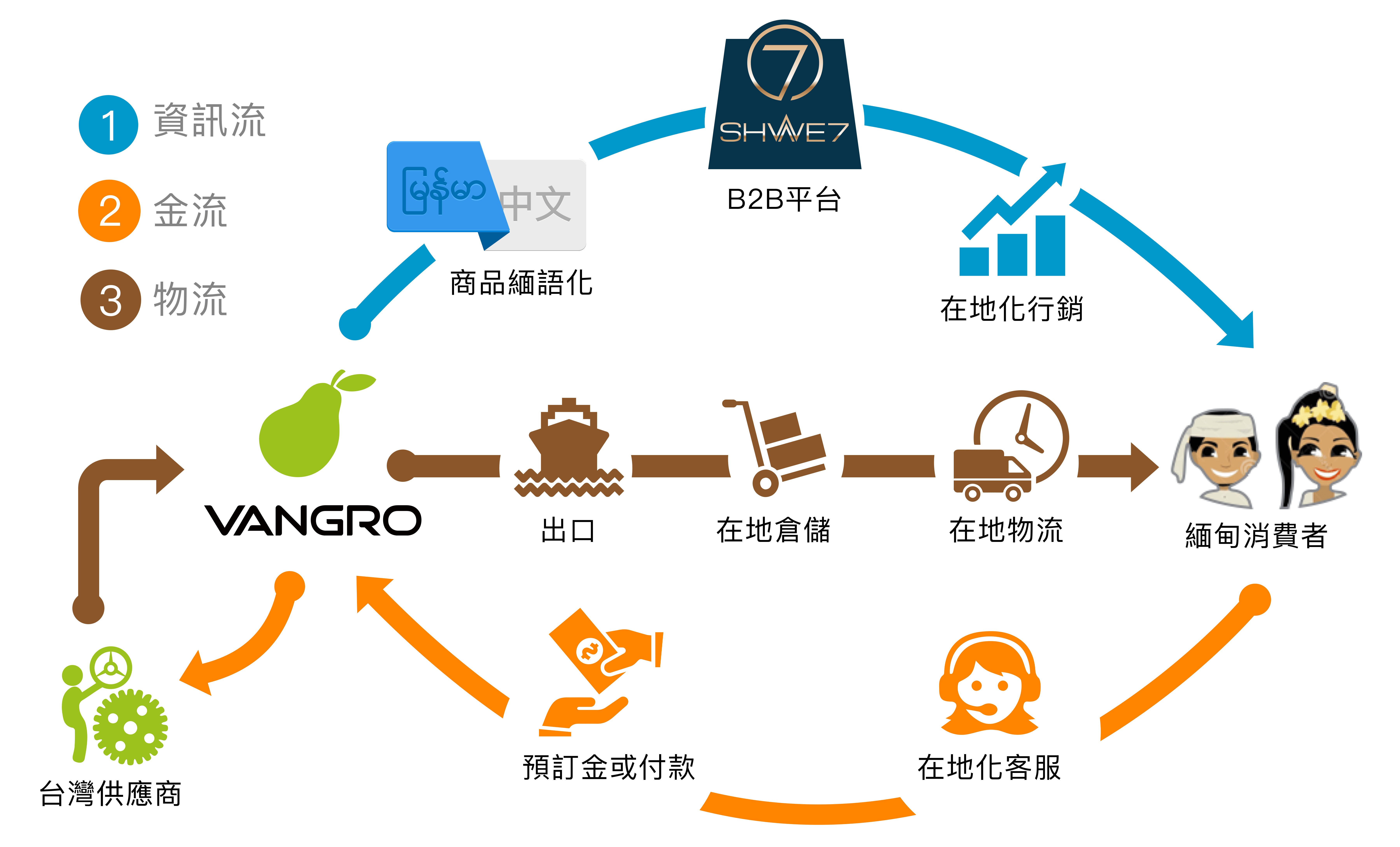 在緬甸電商起步的時刻,我們創造了SHWE7緬文化的電商平台,整合金流與物流, 替您在緬甸市場銷售商品提供一站到底的服務,提供您跨境販售商品的優質平台,除了節省您的成本,也提升了您的國際形象,讓您在追求品質的過程裡,心無旁騖。